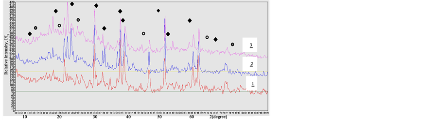 Investigation of the phase composition was carried out on the X-ray Diffractometer (DRON-3) in Cukα radia- tion. X-Ray technique was carried out in continuous mode within the interval of angles 2θ = 10˚… 90˚ [8] .