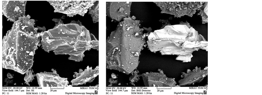 Figure 6 shows that there are mainly two phases: the phase FeSi (the light grey section), and the phase containing only Si (the dark grey section). It is distinctly confirmed at enlargement (see Figure 7).