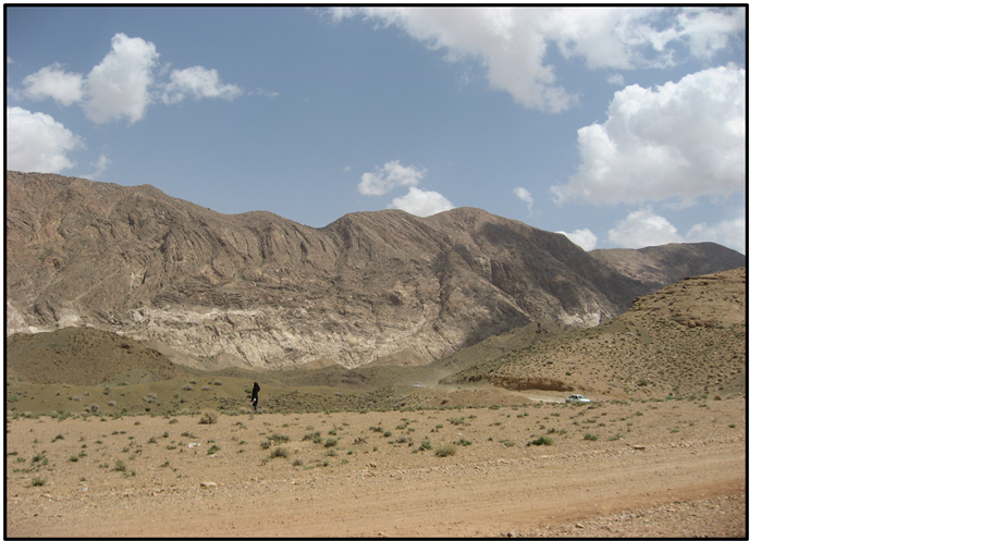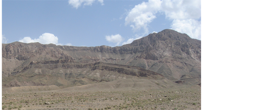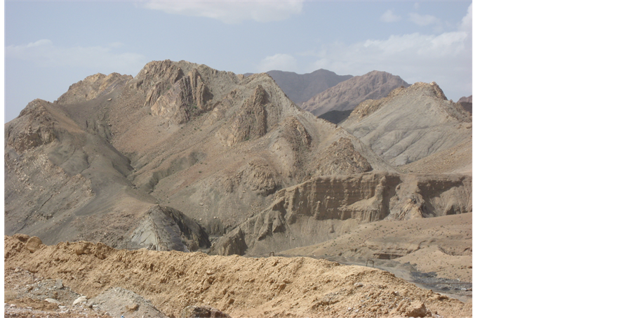Altitudes in this area reach to 2600 m on Shoutori Mountains, which have about 400 m difference respect to the Tabas plain. Geomorphologically, the ridges and valleys in the area under study are mainly due to the rocks variations in the lithology and assisted by faults presence in the area that offer varying degrees of resistance to the degradation processes. Topographically, the down faulted Tabas plain is Neogene gypsiferous soil covered (Figure 2). Slope wash following occasional rains forming badland topography is mainly observed in the low weathered strikes valleys in the Shotouri Mountains (Figure 3).
