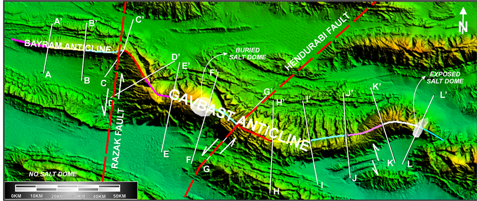 Zagros, Iran, Gavbast Anticline, Fold Geometry, Razak Fault, Hendurabi Fault