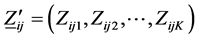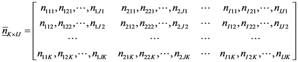 Let us assume that we have an I × J × K 3-way contingency, representing respectively the row, column and layer classifications of the table, and that the K-dimensional vector