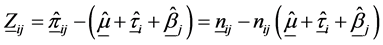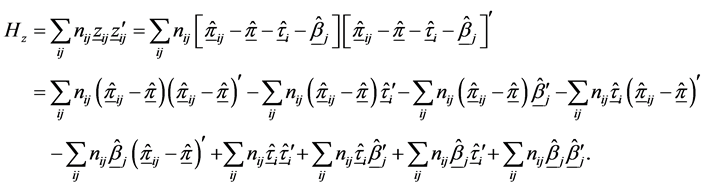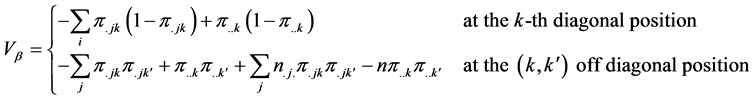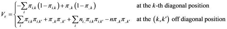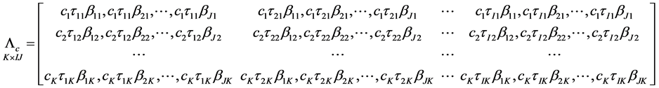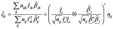 For the kth layer, the interaction between the ith row and jth column is defined multiplicatively as being proportional to the ith row effect and jth column effect and given as
