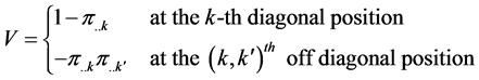 Since the matrix V is nonsingular, by generating the matrix of contrasts, say B and pre- and post-multiplying each of them by B and B transpose, V can be made non-singular.