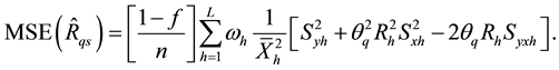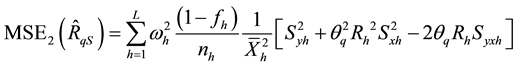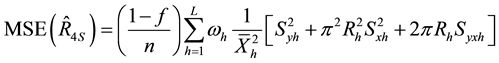Generally, the unconditional mean square errors of the proposed separate-type estimators of the population ratio are obtained as: