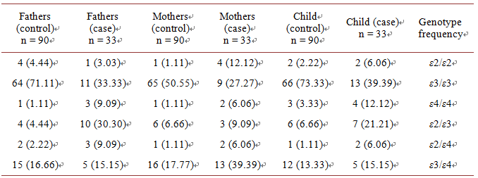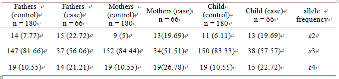 Table 4. Genotype distributions of 112 codon APOE gene for case and the control group.
