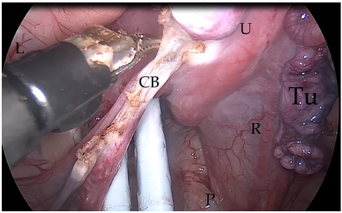Figure 11. The coagulation and cautery of the right cardinal and broad ligaments.