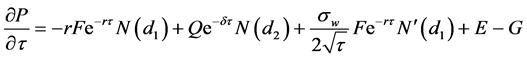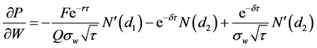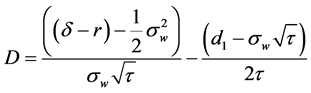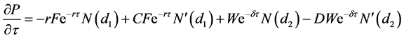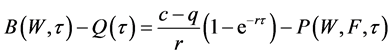 where P(W, F, t) is a European put option on the project, W, with constant dividend dW and an exercise price equal to the principal payment, F. The value of the put option is: