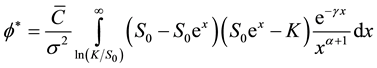 our conceptual model defined in Equation (3) is in line with the generalized call option pricing formula defined by Tan [28] in which S is observed for non-gaussian distributions. This approach is well-known in finance and it requires a minimization of the risk with respect to the trading strategy: