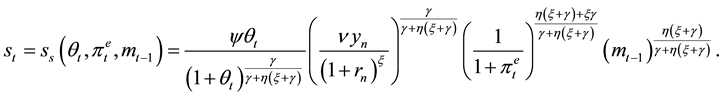 Seignorage is the real amount of resources that government obtains from emitting money. We assume that the fraction of money that is emitted by the government is constant and denoted by y (that is, the monetary multiplayer is 1/y). Thus, the seignorage, denoted by s, is as follows: