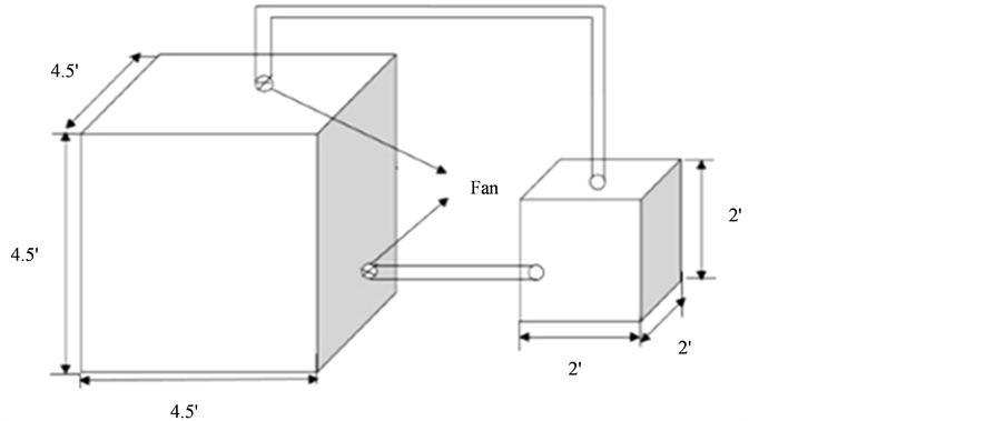 The air purifier chamber was made by timber (2' × 1" × 2') having dimensions 2 × 2 × 2 ft. This dimension was fixed with respect to storage chamber. The two chambers were joined by PVC pipe of 6 inch dia. And two fans of dia. 12" and 8" were also used at both the inlet and outlet sides of the storage chamber (Figure 1(a)).