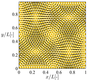 Figure 1. Taylor-Green vortex. Initial condition, shown here on a grid, so that the velocity field is clearly visible.