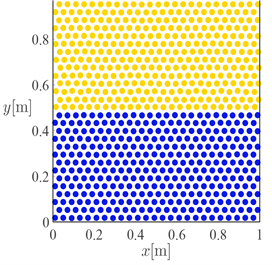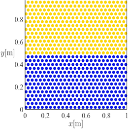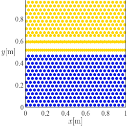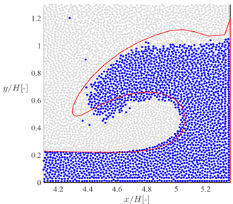 Particle clustering may also occur at the interface between two fluids, due to changes in pressure (e.g. due to surface tension) and pressure gradient (due to gravity), the latter in particular at high density ratios. To deal with the particle instability at an interface, multi-fluid models are introduced by, e.g. Colagrossi et al. [18], Monaghan [19]and Kruisbrink et al. [20]. In the number density approach [18]the wave speed of the high density fluid must be chosen lower than that of the low density fluid to make the algorithm stable. The multi-fluid model of Monaghan [19]is based on a repulsive force between particles of different fluids. At high density ratios the wave speed of the low-density fluid is still a factor 5 to 7 higher than that of the high-density fluid. With the quasi-buoyancy model of Kruisbrink et al. [20][21], much more realistic wave speed ratios (close to reality) can be applied in gravity dominated problems. Although the wave speeds may be artificial in many cases, correct and realistic wave speed ratios are essential in the modelling of heat transfer between two fluids.