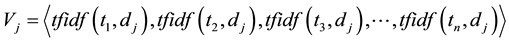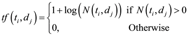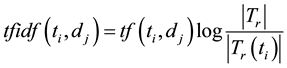 denotes inverse document frequency, where document frequency is the number of documents that contain the term [21] - [23] . The