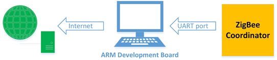 data from several image acquisition subsystem and environment parameter acquisition subsystem in its jurisdiction network. It is mainly composed of a CC2530 of ZigBee coordinator mode and an embedded Linux development board based on ARM processor, as shown in Figure 2. The ZigBee coordinator is responsible for the establishment and maintenance of wireless networks throughout the region, and it receives data from the ZigBee nodes of the subsystem. The embedded Linux platform is responsible for storing and displaying the received data while transferring the data through Ethernet to the backend server for unified management.