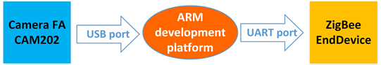 The image acquisition subsystem includes the image acquisition module based on H3 ARM processor development platform and the sending module based on ZigBee terminal equipment, as shown in Figure 4. The image acquisition module controls the FA CAM202 model USB camera to collect images in a certain period, then compress the images and send them to the ZigBee terminal through the serial port, and then send them to the regional gateway through the ZigBee protocol.