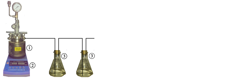 Figure 1. Schematic diagram of experimental set-up. 1―reactor; 2― temperature control system; 3―gas absorbing device.
