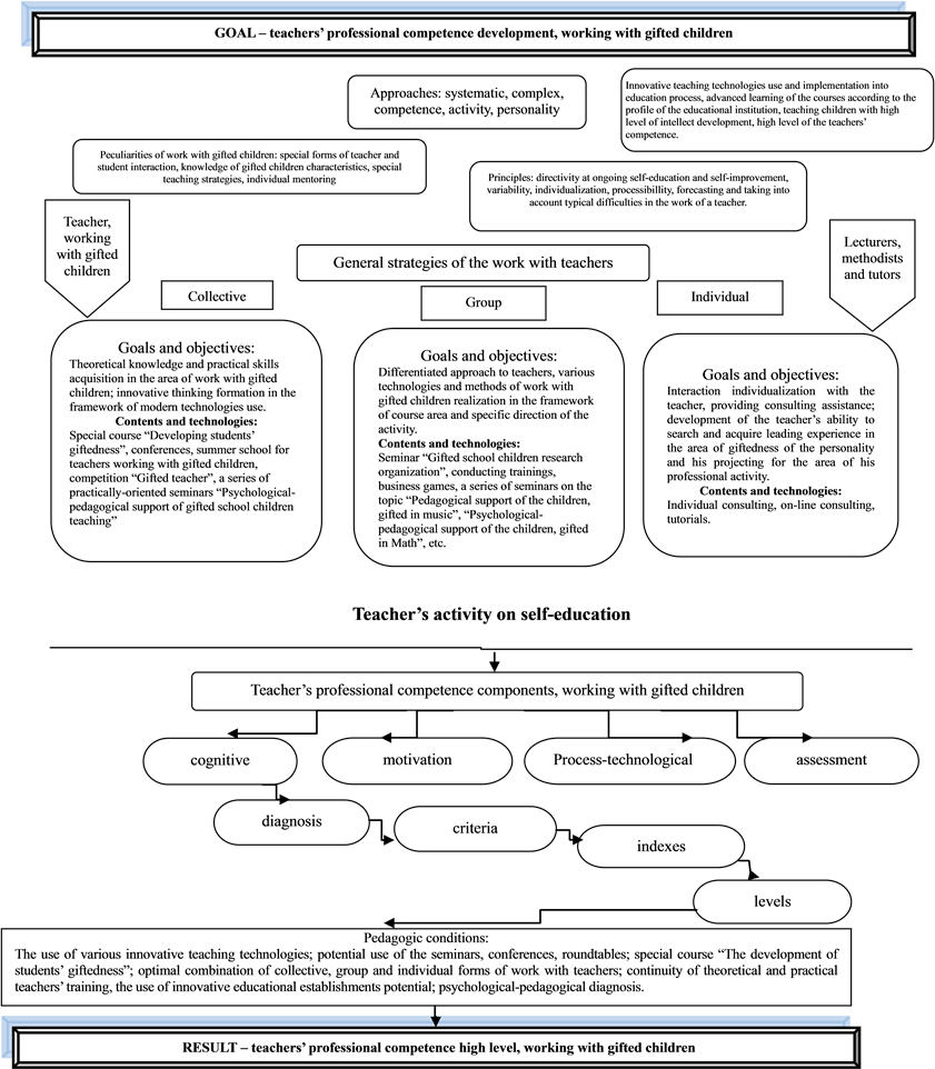 Figure 1. The scheme of teacher’s professional competence development system, working with gifted children.