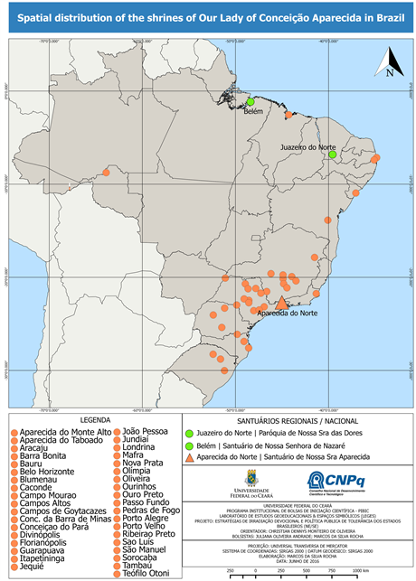 Figure 2. Shrines of Invocation to O. L. of Conceição in the Brazilian territory. Source: LEGES collection (2016).