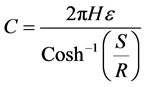 where R is the radius of the cylindrical conductor, H is the length of the cylindrical conductor and S is the distance of center of cylindrical conductor from the plane.