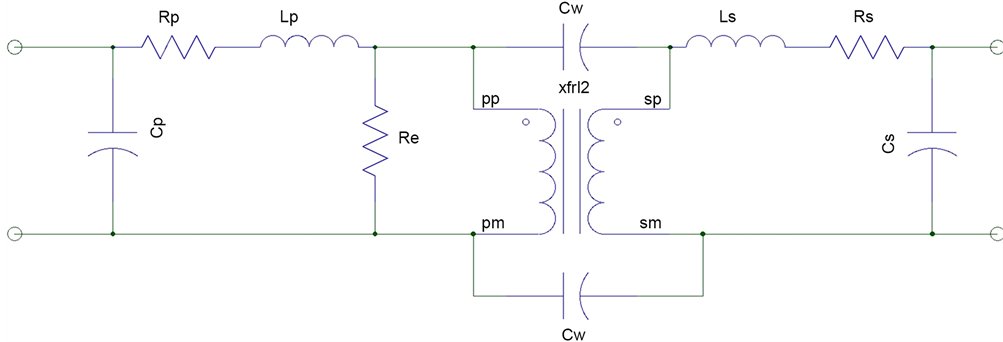 Where Rp is primary winding resistance, Lp is primary leakage reactance, Cp is inter-turn primary capacitance, Re is core resistance, Cw is winding to wind- ing capacitance, Ls is secondary leakage reactance, Rs is secondary winding resistance, and Cs is secondary inter-turn winding (Figure 8).