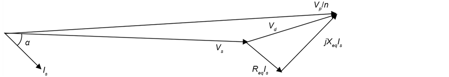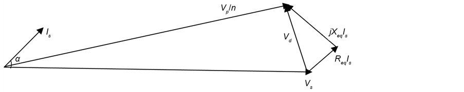 Figure 12. Phasor diagram for transformer voltages with lagging power factor.