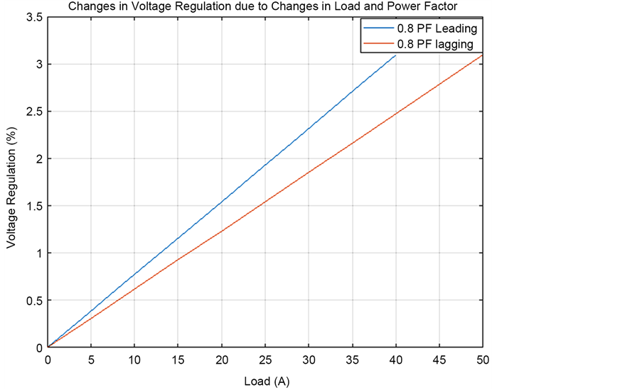 The voltage regulation is also affected by the power factor besides the loading. Figure 14 shows the variation in voltage regulation at different loads and at a specified power factor.