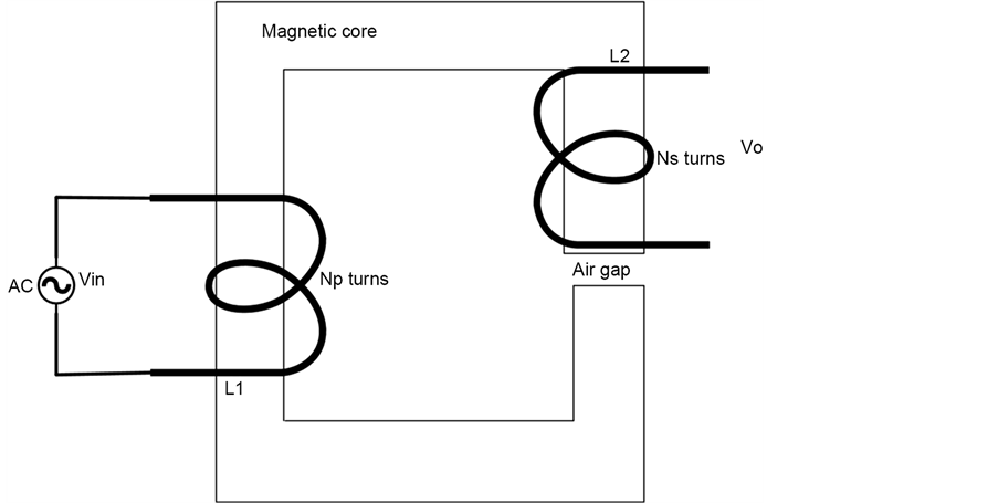 Figure 2 shows a simple magnetic circuit of the transformer in Figure 1. Notice that the reluctance of the magnetic core is in series with the reluctance of the air gap. Practically the air gap has a very high reluctance despite the very small length in the gap.
