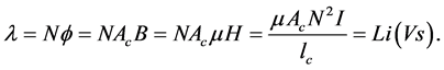 is reluctance of magnetic circuit and L is the inductance of the coil and