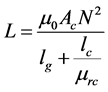 The magnetic core inductance, L can then be calculated using reluctance of the core.