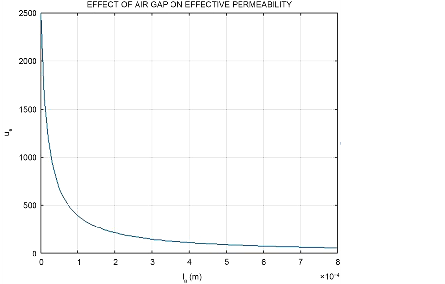 Since permeability of free space is very low, introducing an air gap reduces effective permeability of a magnetic circuit. The advantage of an air gap in a magnetic circuit is that it produces stable effective permeability and reluctance which in turn produces predictable and stable inductance [2] . Figure 4 demonstrates the relationship between the air gap and effective permeability.