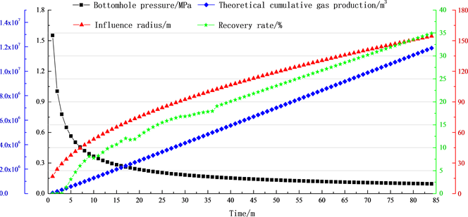 multilateral horizontal well is calculated. The radius of influence based on the front vertical well, and the horizontal section is 1500 m. The radius of influence are shown in Table 6, and the recovery curve is shown in Figure 5.