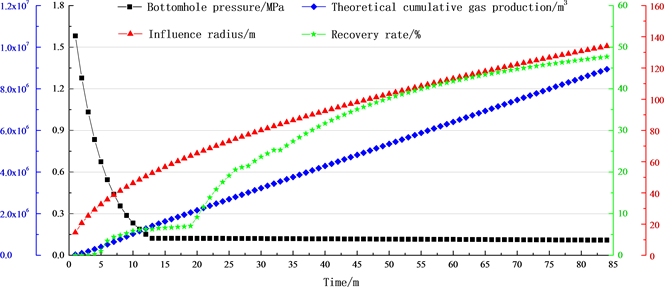 The method is to approximate the drainage and production process of CBM well into the unsteady flow full pressure well pumping process, using the The is formula to calculate reservoir water conduction coefficient. The influence radius is calculated by Jacob formula during the process of production, a gas production model was established to calculate recovery rate.
