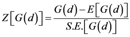 The standard error of G(d) is the square root of the variance of G. Therefore, a z-test can be computed by: