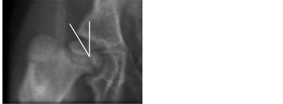 A well-developed acetabulum has an adequate depth of its tear-drop image, a continuous Shenton’s line that is concordant with the proximal femoral portion, and a good development of the acetabular index [28] [29] .
