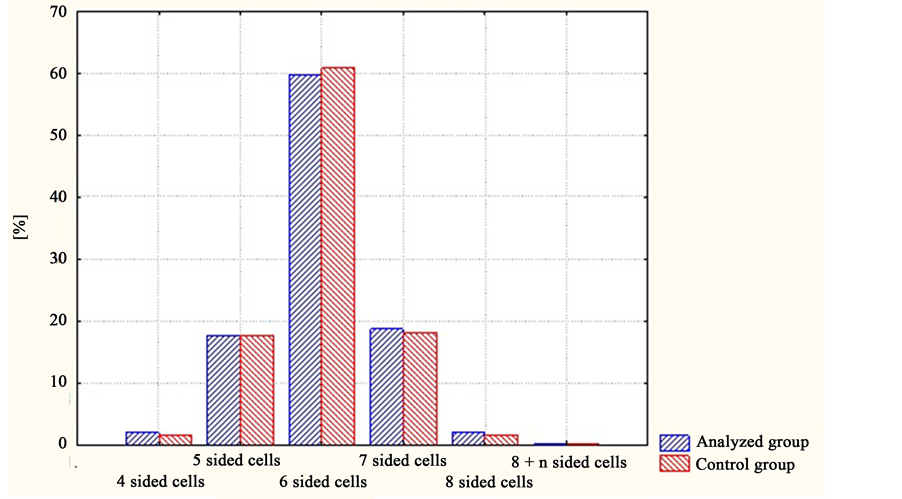 Figure 1. The proportion of endothelial cells with a specific number of sides in children in control and in the analyzed group.