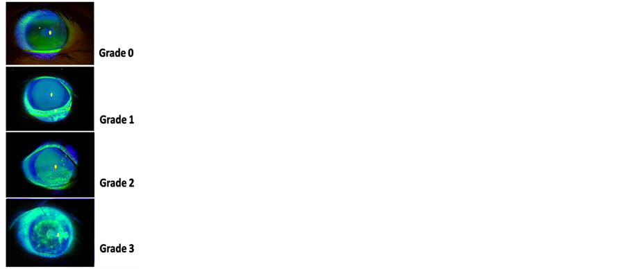 Figure 1. Depicting the corneal fluorescein staining grades.