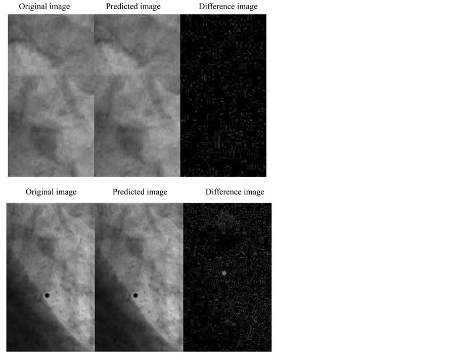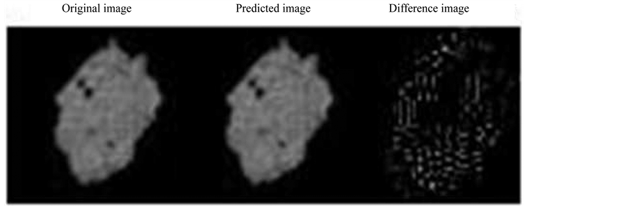 Our input kV fluoroscopic images include both tumor and the marker. We have shown the prediction result including the marker (tumor and marker) and without the marker (only tumor). In both cases there is no much change in the correlation coefficient but there is significant reduction in time due to the reduction of the image size (smaller ROI) hence this method eliminates the use of considering markers. It can also be seen from the result in Figure 7 that due to characteristics of PCA the difference image is only the minor components that are not considered in the prediction.