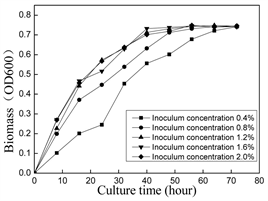 The common factors related to growth are pH, temperature, inoculums concentration and substrate concentration. The effect of cultured pH on the growth of Enterobacter sp. NO3 was shown in Figure 2(a). Enterobacter sp. NO3 could tolerance pH 4.0 to 9.0 and its most optimum pH was 7.0. As Figure 2(b) had shown, when the concentration of phthalic acid was 500 mg/L, the growth of Enterobacter sp. NO3 was the highest. Figure 2(c) represented the effect of culture temperature on the growth of Enterobacter sp. NO3, its suitable temperature range was 30˚C - 37˚C, the growth of Enterobacter sp. NO3 was inhibited while the temperature was below 30˚C or above 37˚C. The effect of inoculation concentration on the growth of the strain NO3 also had been tested, the inoculation amount had no effect on the growth of Enterobacter sp. NO3 when the inoculation concentration was greater than or equal to 1.2 which had been showed in Figure 2(d). When the inoculation amount was less than 1.2, the growth was inhibited 72 hours before inoculation. Effects disappear after 72 hours.