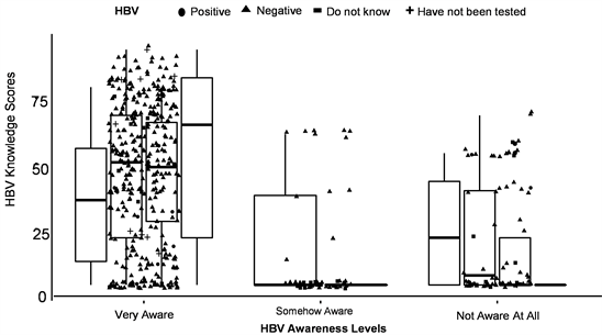 HBV Status and HBV Awareness Levels with HBV Knowledge Scores as
