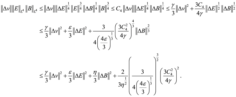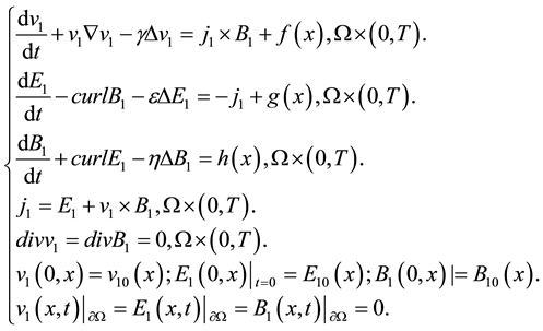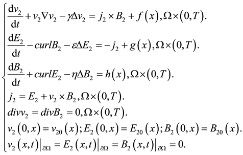 In recent years, the Maxwell-Navier-Stokes equations have been studied extensively, and the studies have obtained many achievements [1] [2] . The Maxwell-Navier-Stokes equations are a coupled system of equations consisting of the Navier-Stokes equations of fluid dynamics and Maxwell’s equations of electromagnetism. The coupling comes from the