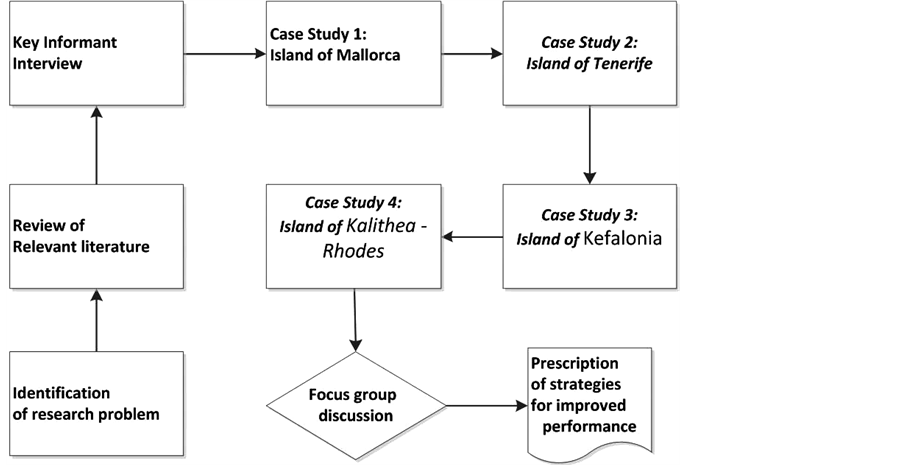 Figure 1 is an outline of the multi-stage methodological approach adopted for this investigation, covering desktop study, fieldwork and data analysis/prescription stages. The preliminary stage of the investigation involved the identification and review of relevant literature on tourism waste management in the European Union [18] [19] as well as a key informant interview with 8 stakeholders in waste management such as tourists, residents , hotel managers, local authority staff etc. Following this, four key EU tourist destinations, Mallorca, Tenerife, Kefalonia and Kalithea-Rhodes were selected as case studies using the purposive sampling technique. Apart from being geographically representative, the four Islands together account for a significant percentage of EU bound tourism and as such provide ideal case studies for this investigation. Adopting participant observation methodology, primary data on waste management were collected from the four case study locations between 2008 and 2012. A focus group discussion comprising 10 experts drawn mostly from the tourism and hospitality sector in Kalithea―Rhodes was also held to aggregate and validate some of the findings from the study. Data collected were mostly qualitative in nature; analysis of quantitative data was carried out using Microsoft Excel for Windows.