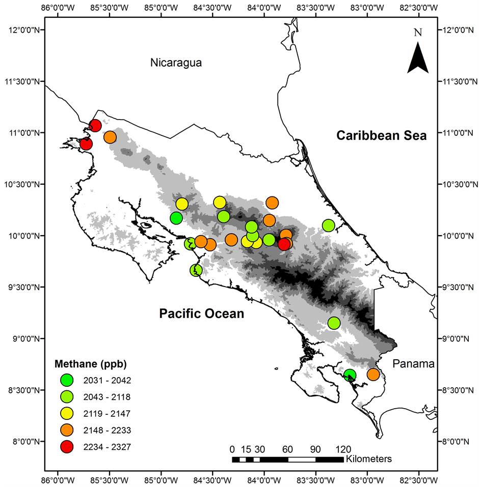 GermainEsquivel-Hernández,MarioVillalobos-Forbes,RicardoSánchez-Murillo,ChristianBirkel,11,JuanValdés-González,JanBoll, (2015) Near Surface Carbon Dioxide and Methane in Urban Areas of Costa Rica. Open Journal of Air Pollution,04,208-223. doi: 10.4236/ojap.2015.44018