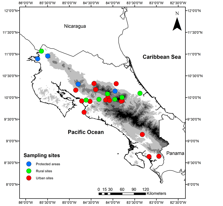 Figure 1. Sampling site locations across the Costa Rican territory.