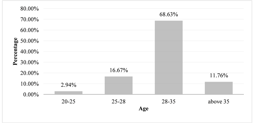 There is a survey about people’s attitude to “leftover women” in Shanghai with 589 available questionnaire. The informants consist of 68.63% female and 31.37% male. The age of 56.85% informants is between 26 and 35, which is suitable for marriage. According to the survey, 68.63% informants approved that the age of “leftover women” is from 28 to 35, and 11.76% of them approved that the age above 35 is “leftover women” (see Figure 1). Obviously, the women which age is between 28 and 35 believed to be the majority of “leftover women”, some of the 11.76% part maybe willing to be single.