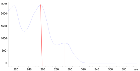 Figure 5. Light spectrum image of hypoxoside with two absorbance max at 260 and 293 nm, respectively.