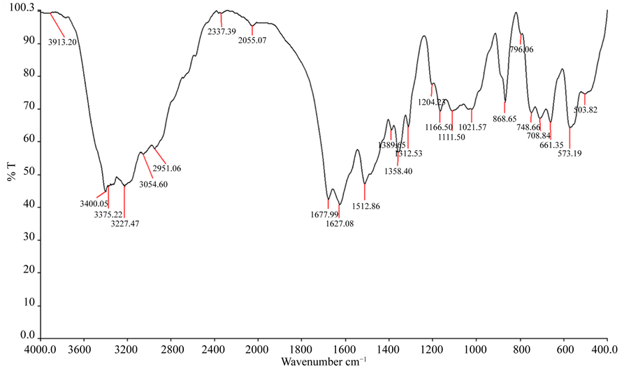 Figure 2. FTIR Spectrum of L-Arginine maleate dihydrate crystal.