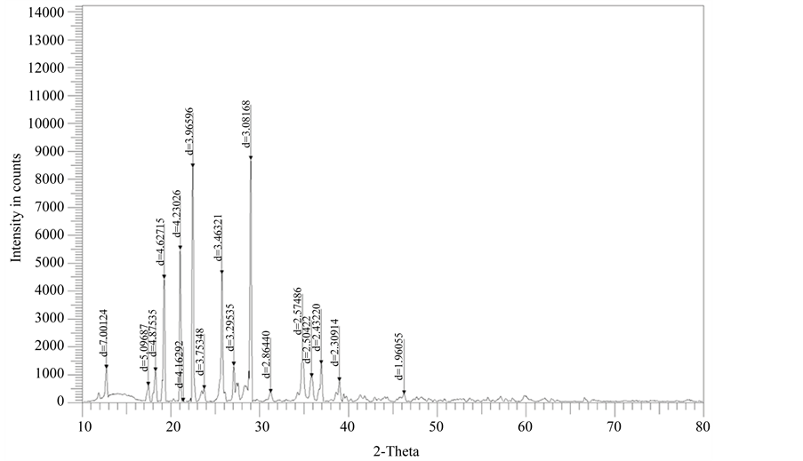 Figure 1. Powder XRD pattern of L-Arginine maleate dihydrate crystal.