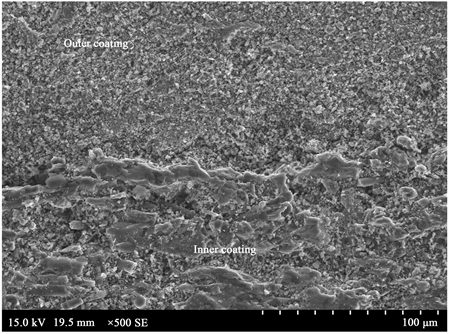 2) The double coating is very dense and crack-free, composed of β-SiC and Si, and has a good bonding with the substrate.