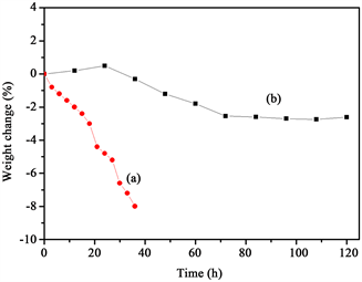 Figure 6. Oxidation curves of (a) SiC and (b) SiC/SiC coated C/C composite at 1600˚C in air.
