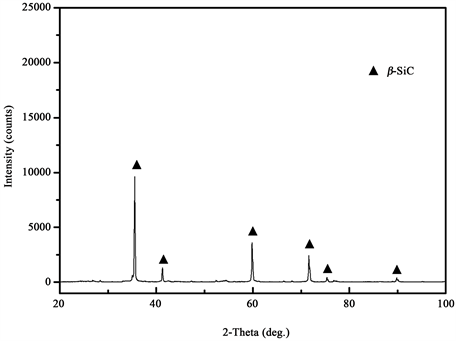 Figure 3. SEM image (a) and XRD pattern (b) of SiC outer coating prepared at 1350˚C for 1 min.